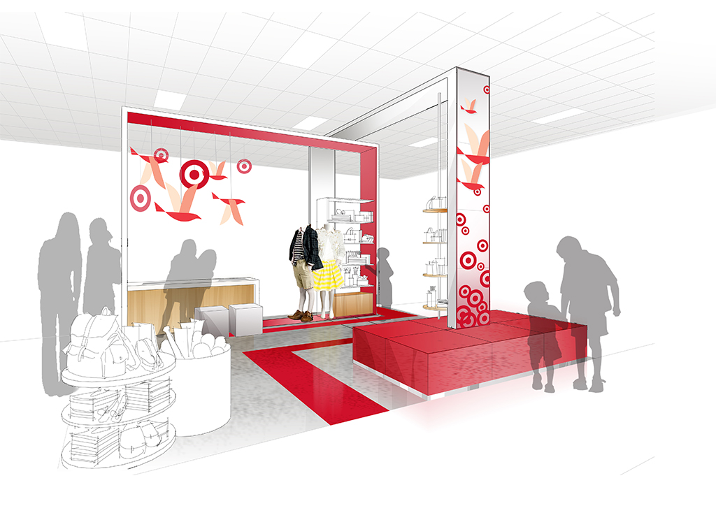 I had the chance to work with some extremely talented interior designers at FRCH on a project for Target. From step one to “mock ups” we created a really neat interactive “Fun Spot” for the children’s department. It would be launched in summer so I thought back to my childhood and created not only 2D wall prints but 3D elements that would grab the kids attention! We created two options - one without dressing rooms and one with.